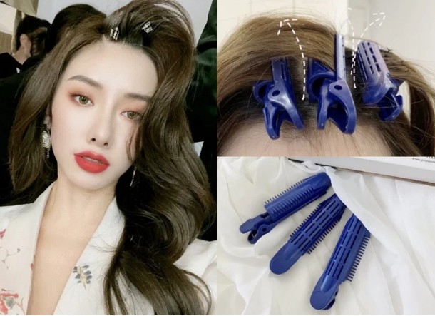 这一步骤是韩妞居家吹整时也很爱用的方法!使用发根蓬松夹或定位夹夹在想要发根蓬松的地方、或是头发分线处~如果是刚洗完头,可以夹著20-30分钟让它定型,这样不需要使用吹风机吹整,发根也会很蓬松!如果出门前想要快速整理头发,拿出吹风机对著发夹制造的分线吹整约3-5秒,就可以让头发变澎、不贴头皮~