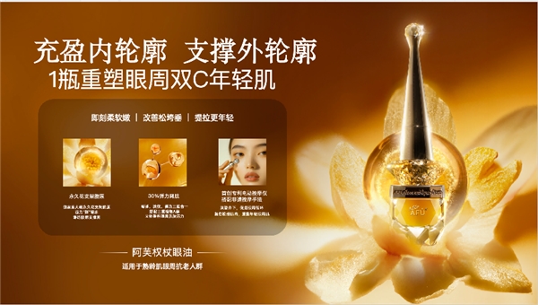 一直以来,阿芙秉持着精研革新的先锋理念,为更进一步夯实以油养眼的行业根基,阿芙依托首代权杖眼油沉淀的卓越口碑与用户反馈,将于今年12月推出第2代权杖眼油。阿芙精准捕捉到,熟龄肌眼周复杂的双C轮廓衰老问题,配合一体化专利眼部按摩仪,为消费者打造居家即可享受深度眼部疗愈SPA的护肤体验,实现由内而外重构眼部肌肤的年轻状态。