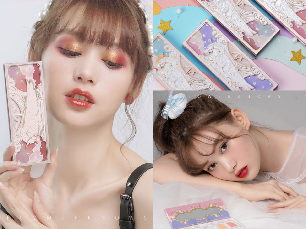 最近洗版到不行的FLOWER KNOWS其实是出自大陆的品牌,名为“花知晓”,不但在大陆当地爆红,甚至还火到日本、韩国去,可见它的包装是真心浮夸又打中女孩的心,以金属色搭配立体的独角兽、星星、欧式风格窗框,里面则是眼影的颜色,夸张度简直满分。