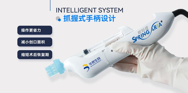 抓握式手柄设计更有助于垂直进针,施术者操作更省力,同时也可减小创口面积,缩短术后恢复期。
