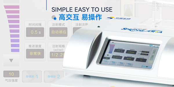 超大屏的全中文界面,注射模式、针剂剂量、负压程度、推进速度等多项参数全界面展示,一目了然。多种模式均可一键式操作,参数设置更简单,大大缩短设置时间,对新手操作十分友好。