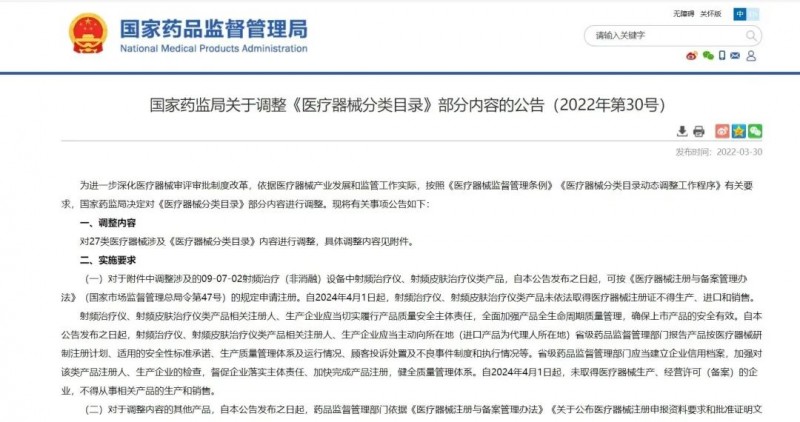 近年来,家用美容仪市场呈现爆发式增长,各种品牌和产品层出不穷,新的技术概念不断推出。为规范美容仪市场,《射频美容设备注册审查指导原则》将于2024年4月1日起正式实施,要求射频治疗仪、射频皮肤治疗仪类产品必须依法取得医疗器械注册证才能生产、进口和销售。这一新规的实施,将对家用美容仪市场产生巨大影响。可以预见的是,随着新规的实施,家用美容仪市场将“大浪淘沙”,迎来更加规范、健康的发展空间。