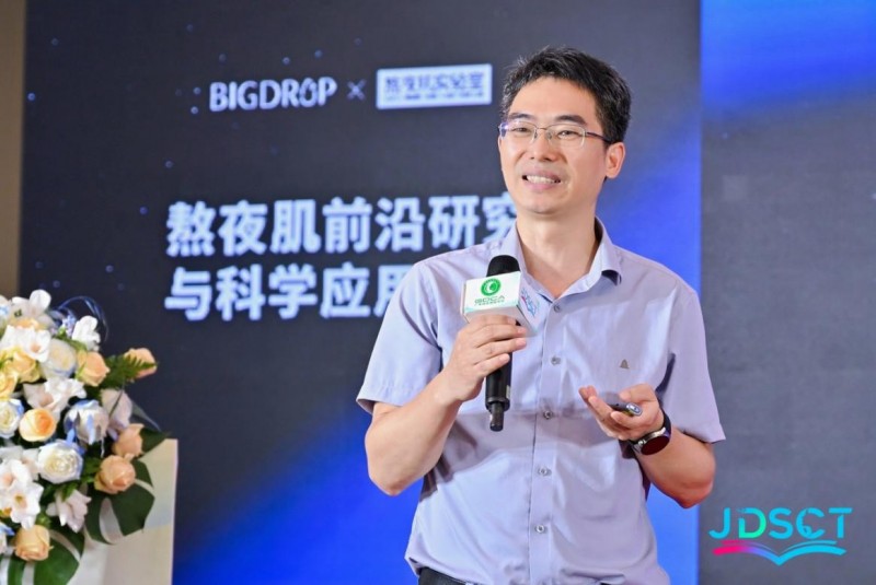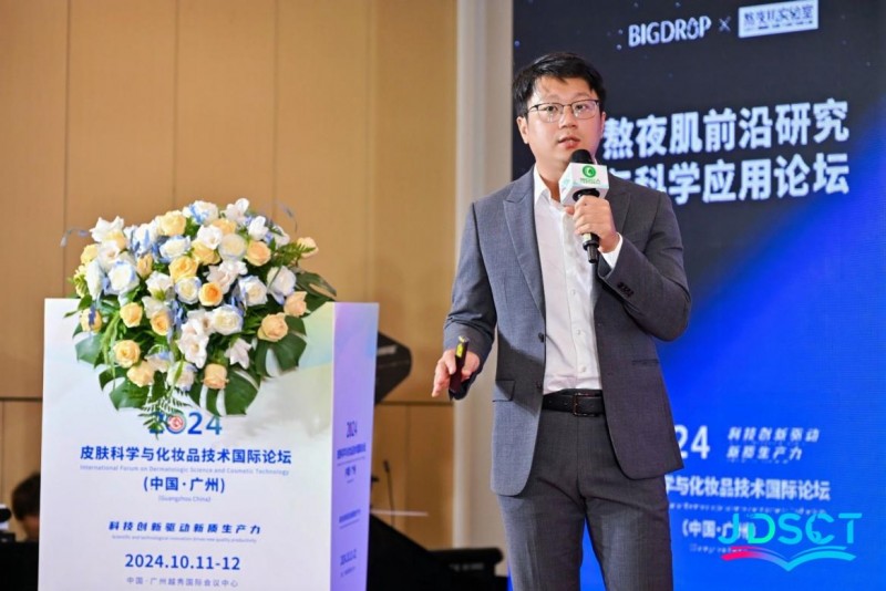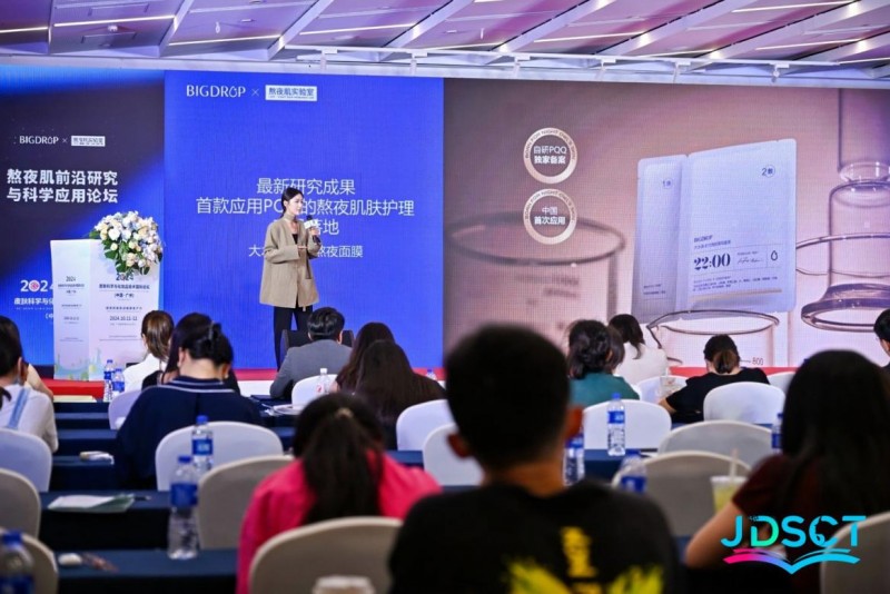 大水滴熬夜肌实验室主任沐风博士在论坛上发表了PQQ首次护肤应用及研究成果的主题演讲,揭示了PQQ与熬夜肌与修护间的密切联系。并分享了熬夜肌实验室突破PPQ极不稳定的特性,以其创新研究视角驱动美业新质力的发展。