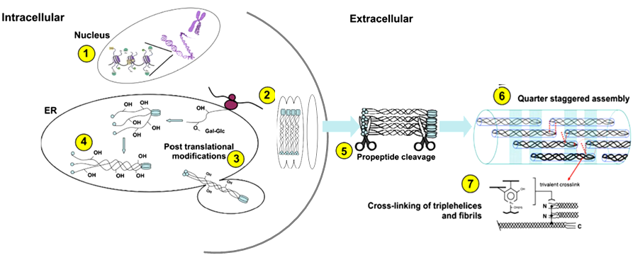 Figure 1 The biosynthesis process of collagen in human tissue inside and outside cells