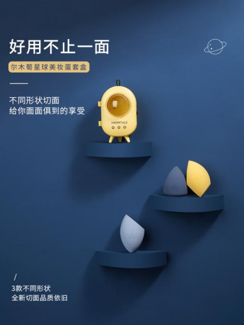 好的美妆蛋应该面面俱到,尔木萄做到了。多种造型,好用不止一面。360度满足上妆需求,让你的底妆更焕光彩。干湿两用,轻松挑战全妆。此次尔木萄打破普通蛋壳的固有造型,首次将定制太空舱的造型放入星球美妆蛋礼盒中,迷你可爱的小太空舱,精致实用,贴心的气孔设计,宜家宜出行,让人眼前一亮。